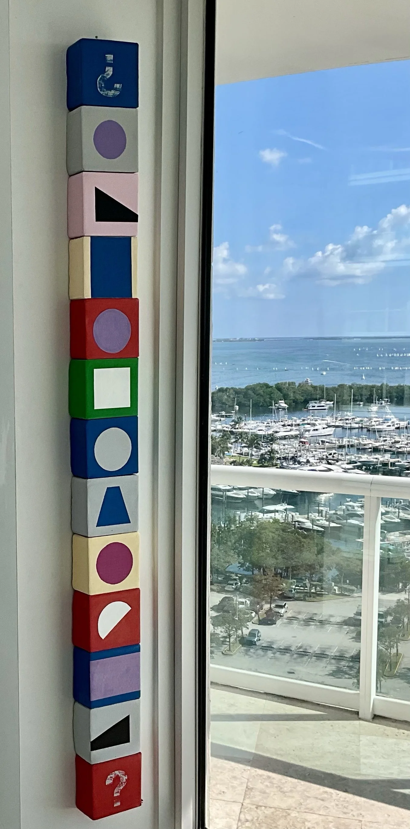 Totem, acrylic on 13 cardboard boxes on spine, c. 2010